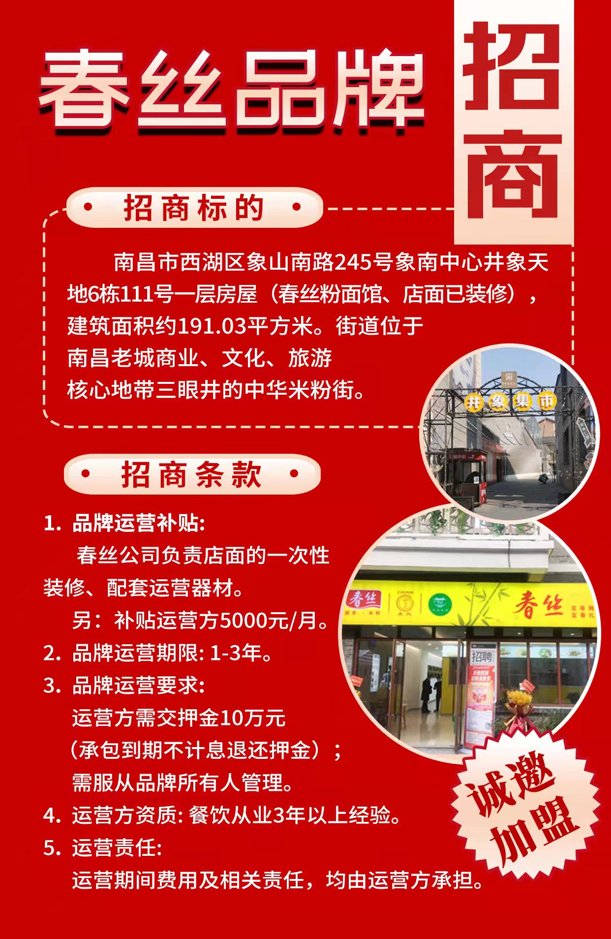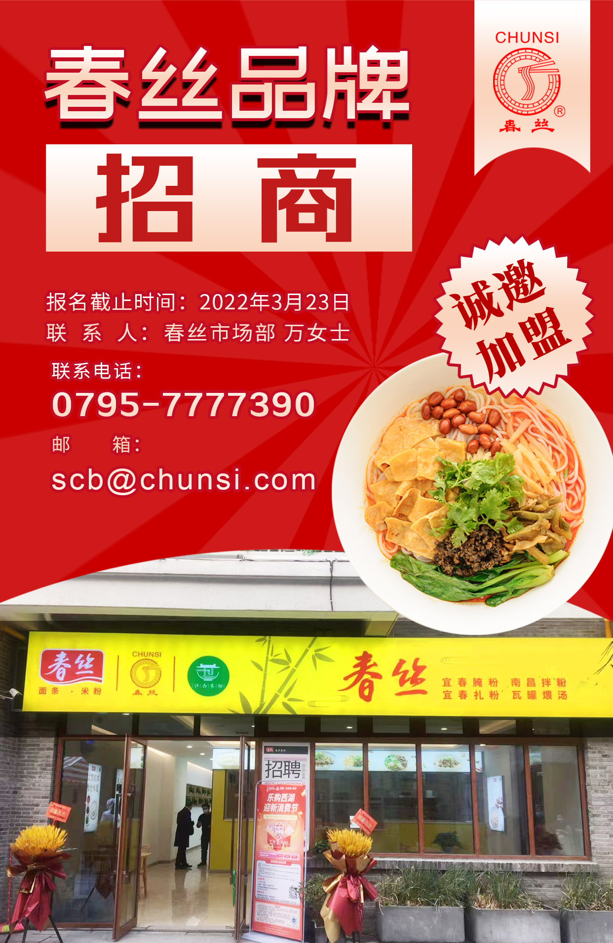 公司動(dòng)態(tài) 首頁(yè) > 公司動(dòng)態(tài) 隆重招商 2022-2-24 10:02:28 江西省春絲食品有限公司官方網(wǎng)站 閱讀 2,160 機(jī)遇,一觸即發(fā)! 小投資,開(kāi)啟大財(cái)富! 餐廳所需全套設(shè)備,餐廳整套收銀系統(tǒng),運(yùn)營(yíng)扶持一站式服務(wù)。 誠(chéng)邀加盟,共贏未來(lái)! 上一篇« 機(jī)電車(chē)間往事 下一篇工作感悟 »